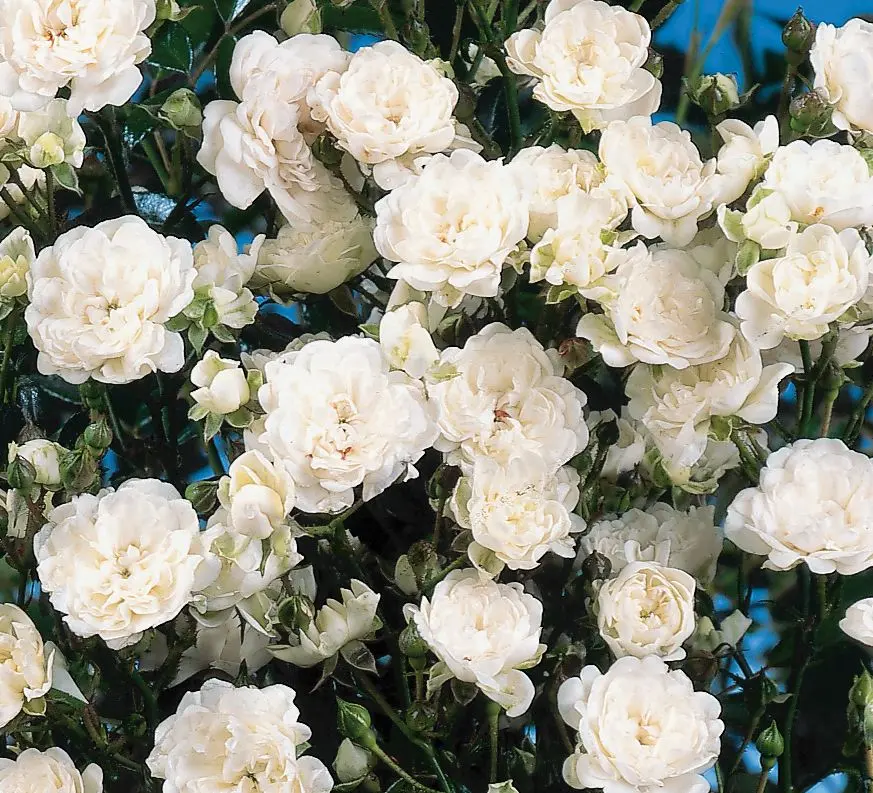Rose ‘Crystal Fairy’Type Polyantha rose. Anvendelse Plantes som middelhøjt til højt bunddække, eller som uklippet, lav hæk. Kan også plantes i små grupper eller enkeltvis i krukker. Blomster Små, fyldte hvide blomster, 20-40 kronblade. 5-8 cm. i d